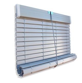 Persiana alicantina de Pvc gris claro. 62 cm. de ancho X 1 m. de largo. Se puede acortar o alargar (quitar o añadir lamas) según el largo que se desee.
