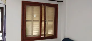 Persianas de madera, ideales para decorar tu hogar con un toque natural y elegante , tengo tres y el precio sería de las 3 medidas 1 de 1'30 ancho y 1'20 largo, y dos de 1'00ancho x 1'20 largo. - Fabricadas en madera. - Diseño de lamas horizontales.