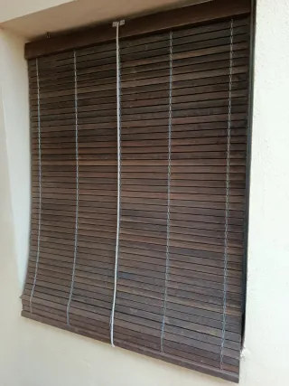 2 persianas de lamas ajustables de madera que se controlan mediante un sistema de cordeles. 20€ cada persiana 130 alto x 80 ancho