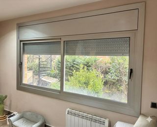 Vendo espectacular ventana de aluminio de gran formato, ideal para salones o estancias que busquen máxima luminosidad y aislamiento. Se encuentra en excelente estado, tal como se aprecia en las fotos. Características Principales: • Medidas Totales: 284 cm de ancho x 169 cm de alto (marcos incluidos). • Material: Aluminio de alta calidad en acabado gris/plata mate. • Configuración: 2 hojas correderas de gran suavidad. • Extras Incluidos: • Persiana de seguridad integrada en el cajón superior. • Sistema motorizado: Incluye pulsador de pared con doble flecha para subir/bajar de forma cómoda. • Cajón de persiana estético y compacto
