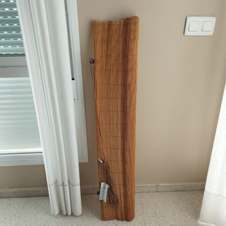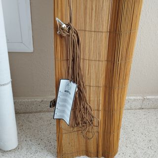 Preciosa persiana de bambú enrollable, en perfecto estado. Ideal para dar un toque natural a tu hogar. 120 de ancho x 175 de alto. - Material: bambú. - Color: marrón claro. - Mecanismo de cuerda para subir y bajar. - Fácil instalación.