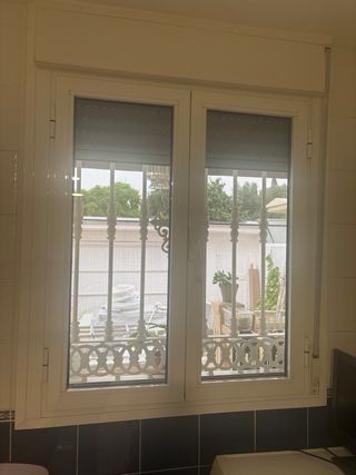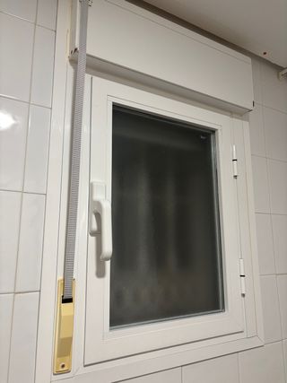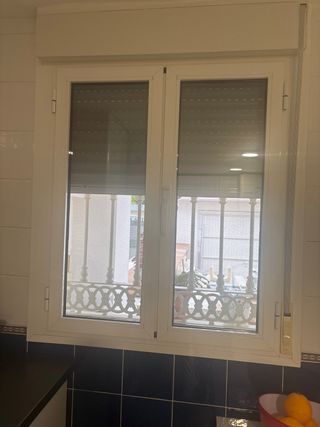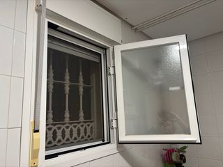 Se vende ventana de aluminio con persiana y mosquitera incorporada. - Marco de aluminio blanco. - Cristal translúcido. - Persiana enrollable. - Mosquitera integrada.