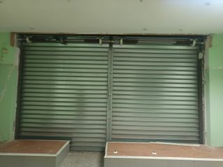 Persiana enrollable de dos hojas con motor eléctrico. Mide 5 metros de ancho. - Dos hojas independientes. - Incluye motor eléctrico.