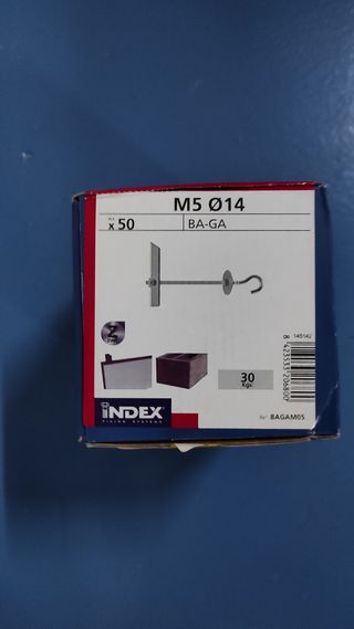 Basculantes por gravedad de gancho para colgar del techo lámparas, persianas, etc. Acabado cincado. Metrica del tornillo-gancho M5. Diámetro 14mm