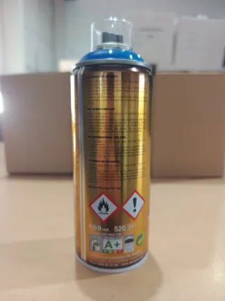 Spray de esmalte alquídico de secado rápido para decoración e industria. - Acabado brillante. - Color dorado metálico. - Uso en construcción y decoración. - 3 cajas para un total de 18 botes de 400ml cada uno.