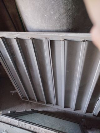 Conjunto de ocho rejas macizas de hierro, ideales para ventanas. Su diseño robusto ofrece seguridad y un toque clásico. - Material: Hierro macizo. - Acabado: Pintura marrón. - Diseño: Cuadrícula con adornos curvos en el centro. - 6 rejas 1,215m x 1,205m - 1 reja 1,70m x 1215m - 1 reja 1,215m x 80cm - 70€ reja por separado
