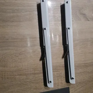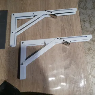 Se venden dos escuadras abatibles de color blanco. Son perfectas para crear superficies de apoyo plegables.En Leroy Merlin valen 12 euros cada una. - Fabricadas en metal resistente. - Diseño plegable para ahorrar espacio. - Acabado en color blanco.
