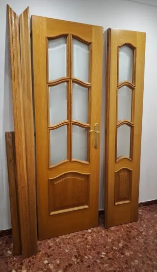 Se venden puertas de madera con ventanas de cristal. Se encuentran en buen estado. Medidas: Altura 203cm Ancho 73cm - Fabricadas en madera. - Diseño con paneles de cristal.
