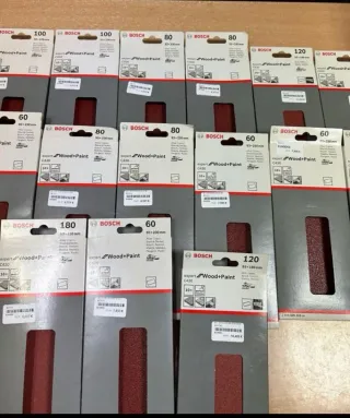 Lote de lijas Bosch Wood+Paint. - Lijas de grano 180 - Lijas de grano 100 - Lijas de grano 80 - Lijas de grano 60 - Lijas de grano 120