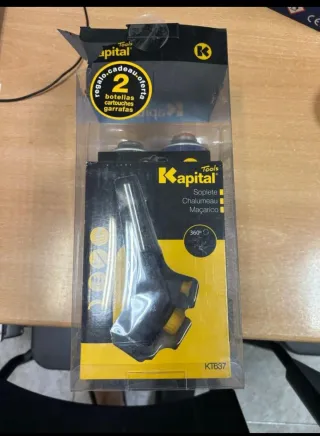 Lote de soplete de la marca Kapital. - Incluye 2 botellas/cartuchos. - Modelo KT637. - Soplete con giro 360°.