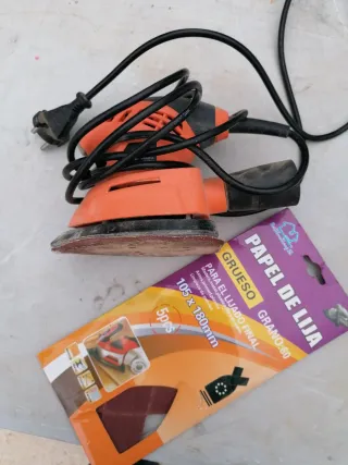 Lijadora eléctrica naranja con papel de lija