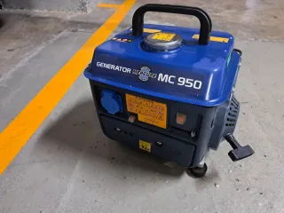 Generador eléctrico portátil de gasolina. - Modelo: MC 950. - Color azul. - Asa de transporte superior. Solo se ha puesto en marcha 2 veces.