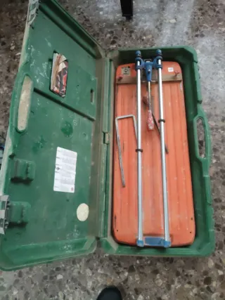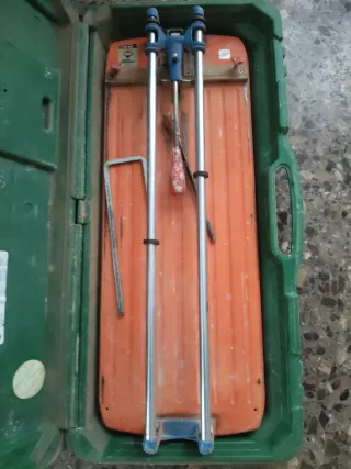 Cortadora de azulejos Rubi TS-60 en su maletín. - Maletín de transporte. - Guías de corte metálicas.