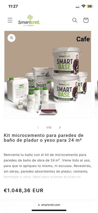 Contiene: 1 kit completo para 24m2 (valor : 1048€). si necesitas para mas surfacie , hablame en privado porque nos sobran otros productos de un segundo kit que teniamos de este color (en las fotos se ve mas que un kit) Color: cafe (ver foto) Acabado: mate 📦 1 kit 24m2 contiene: 3 × Smart Primer ABS 1 L – La primera jugada maestra: la imprimación que hace que el microcemento se agarre como si llevara toda la vida ahí. 3 × Smart Base 16 Kg – El músculo del cambio: corrige, nivela y crea una base sólida que aguanta lo que le eches. Microcemento de preparación ya coloreado. 3 × Smart Liso (1x3Kg y 2x6Kg) – El toque elegante: paredes suaves, continuas y tan lisas que invitan a pasar la mano. Microcemento de acabado ya pigmentado. 1 Smart Varnish 5L – El escudo definitivo contra humedad, agua y trote diario. Mate o satinado, tú pones el estilo. 1 Smart Booster 250 g – El refuerzo que lleva la resistencia del barniz a su máximo nivel. Lijas – El arte de perfeccionar: 18 de grano 40, 30 de grano 220 y 18 de grano 400 para que cada capa sea impecable.