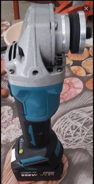 amoladora nueva de 18v,de 125 de disco, motor sin escobillas, compatible con batería Makita 18v,con batería de 6 amperios y cargador.