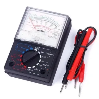 MULTIMETRO ANALOGICO POLIMETRO TESTER AMPERIMETRO VOLTIMETRO PROTECCION YX 1000A Span de medición: Corriente continua: 0-0.5-50-250 (500) mA. Voltaje directo: 0-10-50-250-500 (1000) V. Voltaje alterno: 0-10-50-250-500 (1000) V. Resistencia: R10 × 100 × 1K. Frecuencia Electica de Audio: -20- + 22DB. (2) Precisión: alta. (3) Tamaño: 9 cm × 6 cm × 3 cm. (4) Accesorio: un par de barra de prueba.