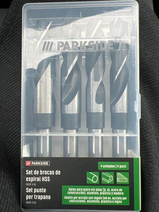 Set de 4 brocas de espiral HSS de la marca Parkside. - Modelo: PASP 4 A1 - Aptas para acero sin alear, aluminio, plástico y madera.