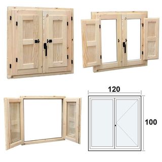 Ventana de madera practicable de 120x100 cm cristal doble climalit, Ventana practicable de 2 hojas fabricada en madera de pino sin tratar. Paneles de contraventanas chapadas en hoja de pino natural. Poseen un vidrio doble 4/6/4 climalit. Proyecto fabricado con madera responsable. Goma en marco aislante y herraje embutido. Garantía 3 años. Medidas: 120 x 100 cm (ancho x alto). PRODUCTO NUEVO EN SU EMBALAJE ORIGINAL