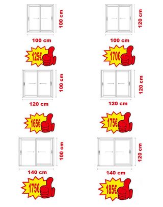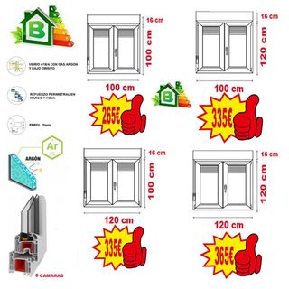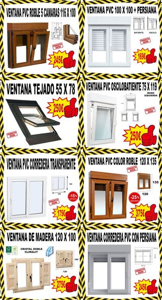 Se venden ventanas de PVC y aluminio, tambien se fabrican a medida, correderas, abatibles, oscilobatinetes, osciloparalelas, elevables, bicolor, madera, aluclick, guardiansun, bajo emisivos, etc..., pidenos presupuesto sin compromiso
