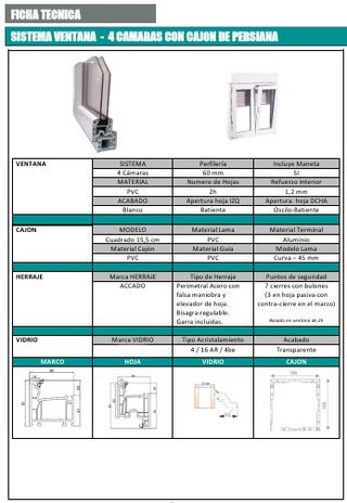 Ventana de PVC oscilobatiente y cierre abatible, con persiana incluida, color blanco mate y medidas 100x115cm. Perfil de 58mm tiene 4 cámaras aislantes. Ventajas del producto: con doble acristalamiento 4/16/4 bajo emisivo que favorece el ahorro energético. Además incluye garras para su instalación. Refuerzo interior perimetral: tanto en hojas como marco de acero galvanizado, lo que ofrece mayor duravilidad al producto, además de mayor resistencia ante posibles dilataciones de la fachada. PRODUCTO NUEVO EN SU ENVALAJE ORIGINAL