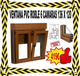 VENTANA PVC ROBLE 136x120 - 6 CÁMARAS