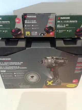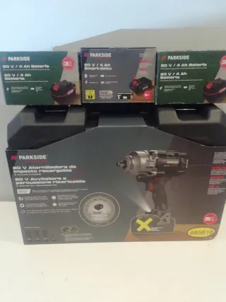 Atornillador de impacto Parkside 20V con una potencia de 1898 Nm. Ideal para trabajos exigentes. - Incluye 1 batería Smart Battery X20V 4Ah smart performance - 2 baterías Parkside 20V 4Ah - Controlable vía Bluetooth. - Indicador de nivel de batería LED de 3 niveles. - llave de vaso 3