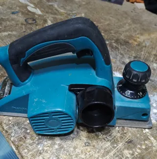 Cepillo eléctrico de la marca Makita. - Color azul y plateado. - Empuñadura ergonómica. - Dial de ajuste de profundidad.