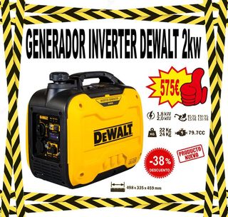 Generador inverter DeWalt de 2kw, modelo DXGN20E. Ideal para diversas aplicaciones. - Potencia de 1.8 kW / 2.0 kW. - Peso de 22 Kg / 24 Kg. - Cilindrada de 79.7 CC. - Dimensiones: 498 x 335 x 459 mm. - Producto nuevo.