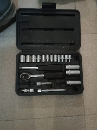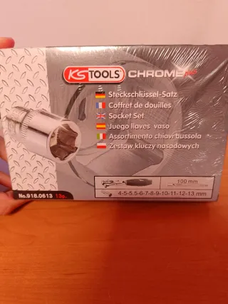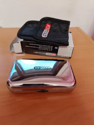 Vendo juego de llaves de vaso KS Tools con carraca de 1/4” en su maletín original. Incluye varios vasos, alargadores y accesorios como se ve en las fotos. El maletín NO está completo, faltan algunas piezas, por eso el precio es reducido. Marca profesional de buena calidad, ideal para mecánica, bricolaje o tener un juego básico de herramientas. Estado bueno y funcionando perfectamente.