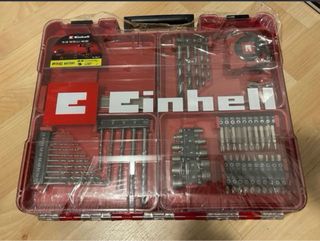 Set de taladro percutor Einhell con varios accesorios. - Incluye brocas para madera y metal. - Juego de puntas para atornillar. - Maletín de transporte rojo. - Incluye 2 baterias y Cargador rápido - Precio rebajado No Negociable!!! - Nuevo a estrenar precintado!!