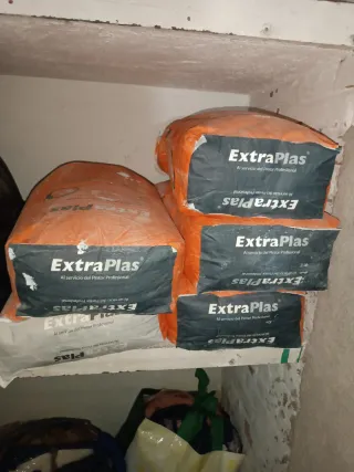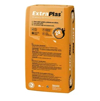 Sacos de producto ExtraPlas, ideal para pintores profesionales. Sirve para cubrir gotelé y pinturas en relieve, así como para renovar paredes rugosas y texturizadas. - Para cubrir gotelé y pinturas en relieve. - Para renovar paredes rugosas y texturizadas. - Tiempo de trabajo de 24 horas. - Rendimiento de 0,95 kg/m². - Se puede aplicar en capas gruesas. - Gran adherencia sin necesidad de rascar el fondo. - Color blanco. ES QUE TERMINE LA OBRA Y ME SOBRARON 5 SACOS Y PARA PODER RECUPERAR ALGO