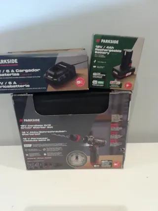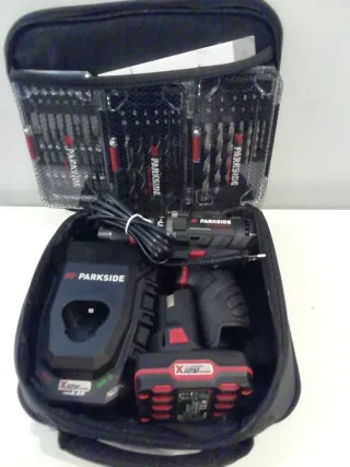 Set de taladro atornillador Parkside 12V Performance. - Incluye cargador de baterías de 6A. - Batería recargable de 12V / 4Ah. - 3 cajas brocas - Maletín para transporte y almacenamiento.