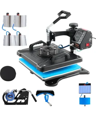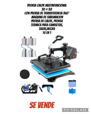 Prensa de calor con múltiples accesorios para sublimación y vinilo textil. - Incluye resistencias para tazas y platos. - Plato de 30x38 cm. - Panel digital de control de tiempo y temperatura. - Accesorios para tazas y platos incluidos.