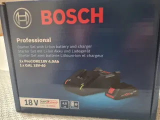 Set de batería y cargador Bosch Professional 18V. - Incluye 1x Batería ProCORE18V 4.0Ah. - Incluye 1x Cargador GAL 18V-40. - Compatible con el sistema AMPShare. Totalmente nuevo , la caja esta sin abrir con su precinto. Se envia.
