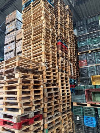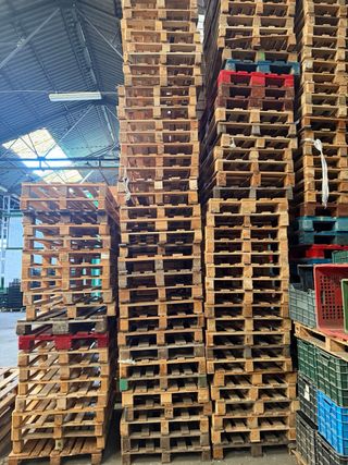 Lote de palets europeos de madera. - Medidas estándar europeas. - Ideales para logística y almacenamiento. - Construcción robusta. -2,50€ UNIDAD.