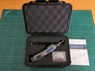 Minitaladro inalámbrico con accesorios y estuche de transporte. - Portabrocas universal 0,5-3,2 mm - 3 velocidades 8500-16500-21000 RPM - Segundo portabrocas de mordazas - Incluye cable de carga USB. - Estuche hermético para proteger el contenido. - Juego de accesorios.