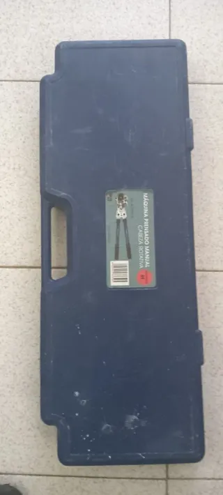 Prensadora manual para multicapa. - Incluye maletín de transporte azul. Solo usada dos veces,con piezas de prensado paea 16mm,20mm,32mm. Tamaño: 55-57cm peso:3.7kg