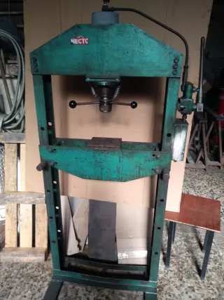 Prensa manual de uso industrial, robusta y funcional. - Estructura metálica resistente. - Base estable para mayor seguridad. - Mecanismo de palanca para aplicar presión. A falta de limpieza y engrase. Funciona bien