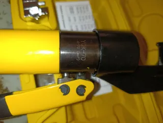 Alicates hidráulicos manuales YQK-70. Alicates hidráulicos manuales YQK-70 alicates de prensado de cables de punta de cobre alicates de electricista prensado de terminales de aluminio 4-70mm - Cuerpo principal de color amarillo y negro. - Empuñadura negra texturizada para un mejor agarre. - Mecanismo de giro con indicadores ON y OFF.