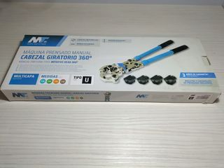 Herramienta de prensado manual de la marca MT con cabezal giratorio 360°. - Incluye maletín y casquillos de prensado. Solo se uso una vez - Medidas de casquillos: 16, 20, 26, 32. - Tipo de casquillo: U.
