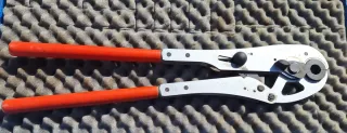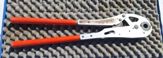 Herramienta manual profesional GURPIL para prensar terminales. Diseñada para un uso eficiente y duradero. - Cuerpo metálico plateado. - Mangos negros ergonómicos. - Marca: Gurpil en perfecto estado. - Estado: Muy robusta, acero forjado. Ideal para electricistas o mecánica industrial. Incluye su funda original roja. Funciona suavemente y sin holguras.