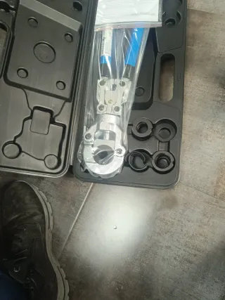 NADA DE NEGICIAR PRECIO FIJO TLF: 677272238. SE ENVIA CONTRA REMBOLSO A CARGO COMPRADOR CASQUILLOS DE TIPO U 16,20,25,32 . BISELADOR NO INCLUUDO Herramienta para fontanería, prensa multicapa hidráulica manual. - Incluye maletín de transporte. - Juego de mordazas. - Manual de instrucciones.