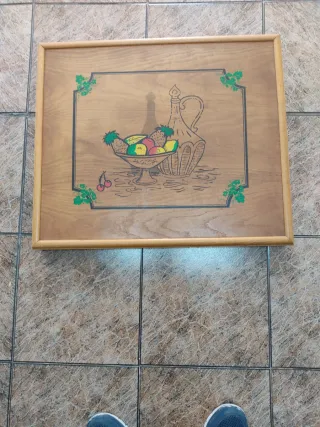 Tapa decorativa para encimera con un diseño de frutas y jarra. - Material: Madera. - Diseño: Frutas y jarra. - Marco: Madera.