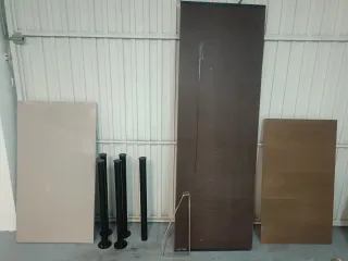 Lote de materiales para proyectos de bricolaje. - Tablero grande de color beige. - Tablero mediano de madera. - Tablero largo de color marrón oscuro. - Juego de 4 patas metálicas negras. Ideal mesa cocina , escritorio,varios Tablón gris era un frontal de cocina madera lacada con cantos metálicos calidad Escuadra metálica Caseta manualidades Todo 20€