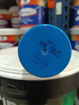 Lata de spray de pintura acrílica. - Color: RAL 5015. - Acabado brillante. - Contenido: 400 ml. - máxima calidad. EN OFERTA HASTA FIN DE EXISTENCIA.