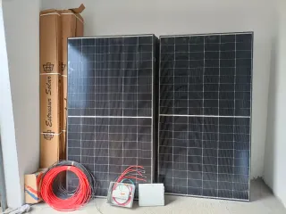 17 placas solares fotovoltaicas listas para instalar. De 590 w jA solar - Estructura de aluminio. - Cables de conexión incluidos. - Caja de conexiones. - inversor híbrido Huawei 10kw