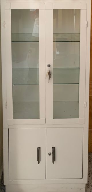 Vitrina metálica antigua con puertas de cristal