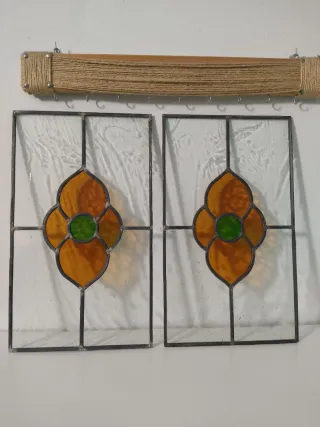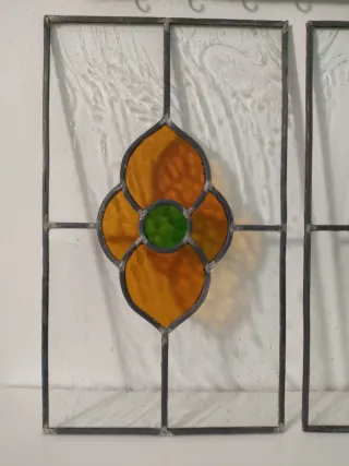 Preciosos cristales para mueble .ideales para puertas de mueblle antiguo o decoracion. -hechos a mano soldaduras en bruto. -cristal blanco jaspeado. -medidas 46'5 ×27'5. -estructura metalica