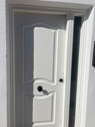 Puerta de entrada de segunda mano en buen estado. Se recomienda darle una mano de laca para renovarla. - Color blanco. - Diseño con paneles. - Incluye cerradura , mirilla , tirador y manilla interior , si la quiere montada son 120 euros el montaje aparte ya que yo soy carpintero si no buscar montador por otro lado y yo la monto si es en Málaga fuera no