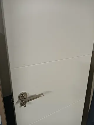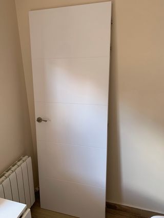 Puerta interior de diseño moderno. - Color blanco. - Diseño con líneas horizontales. - Tirador metálico plateado. - Medidas : 202 cm x 62 cm Nunca se ha usado. Se ha sustituido por otra en vivienda de obra nueva.